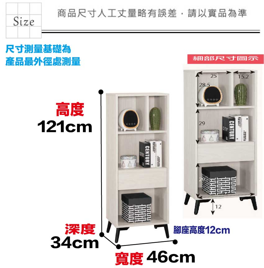 尺寸:(寬)46x(深)34x(高)121/公分
