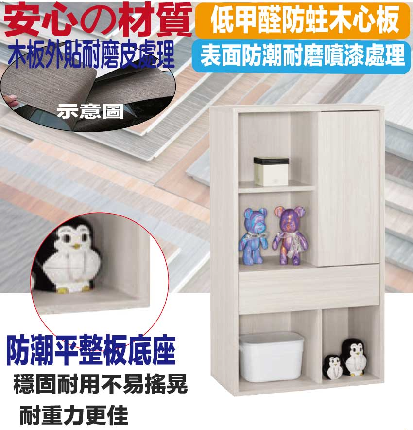 材質:防蛀木心板+防潮耐磨底座+防夾手緩衝門片五金+五金滑軌結構