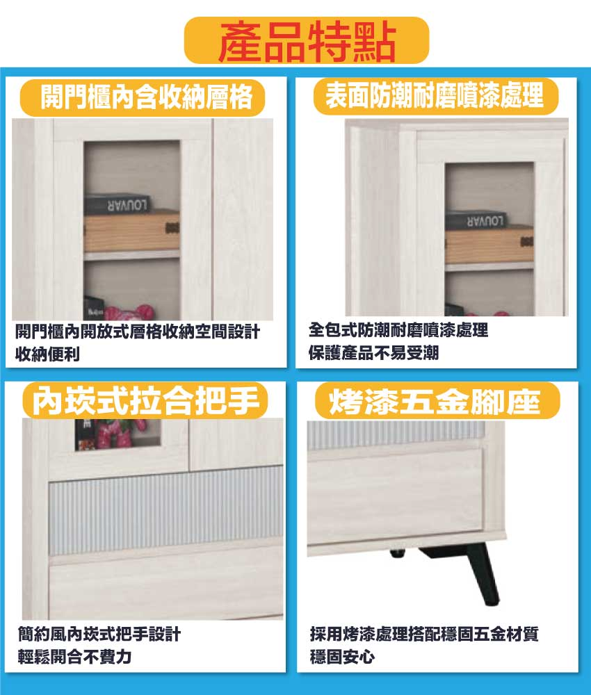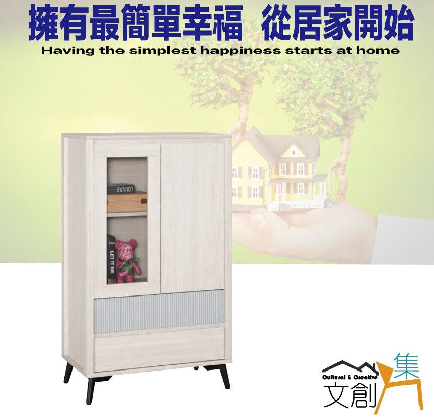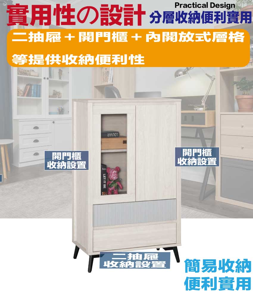 - ◆產品名稱:【綠家居】克萊雙色2.3尺二門二抽展示櫃