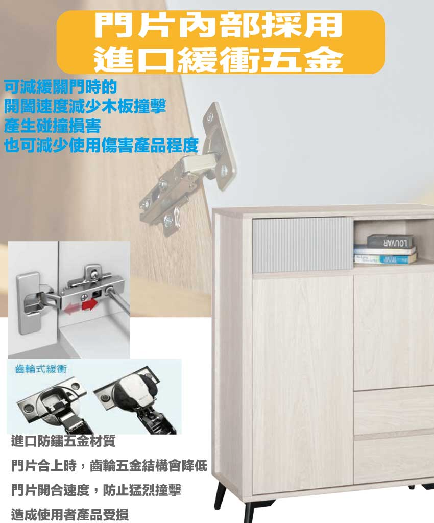 材質:防蛀木心板+防潮MDF板材(灰色耐磨面板)+烤漆五金腳座+防夾手緩衝門片五金+五金滑軌結構