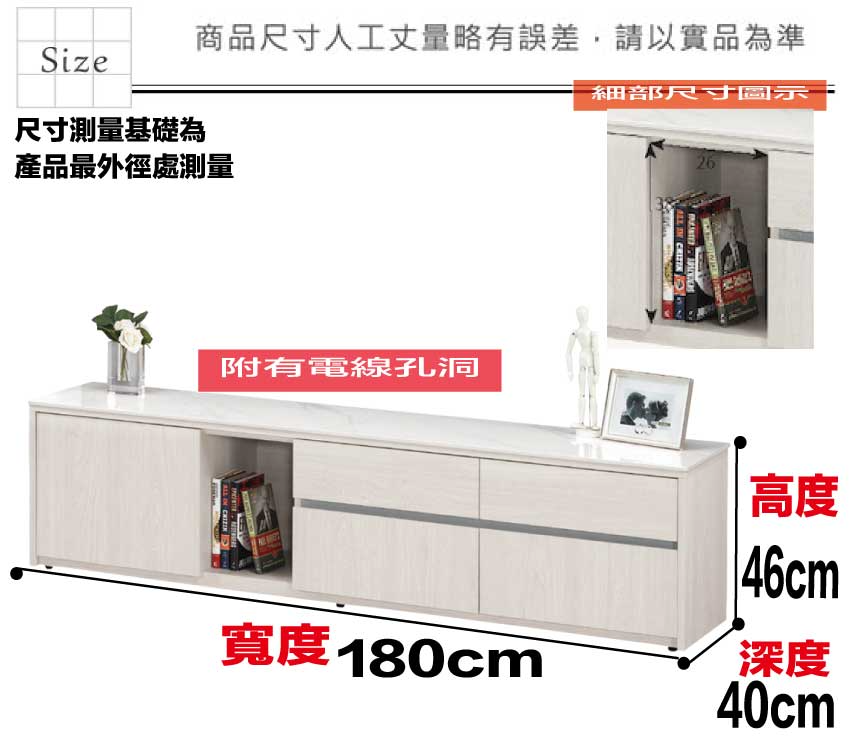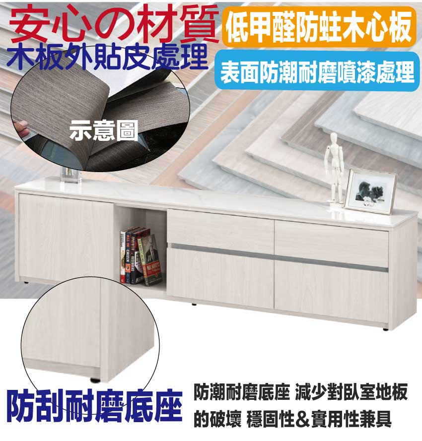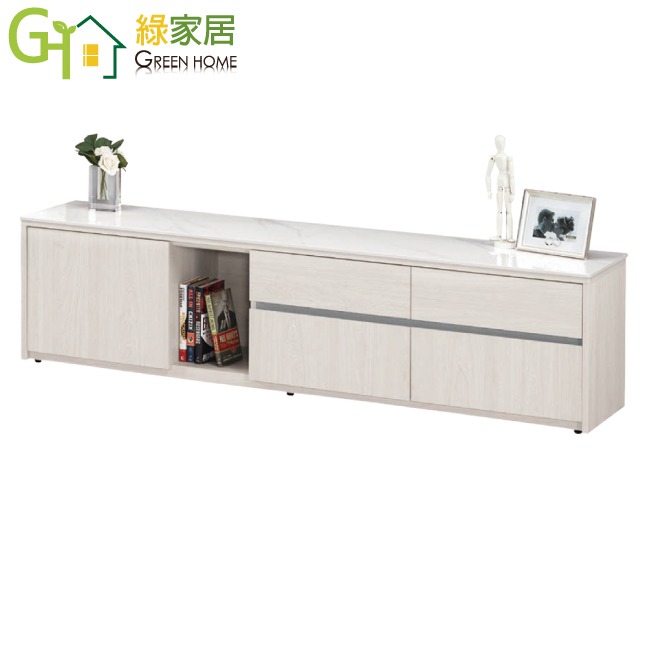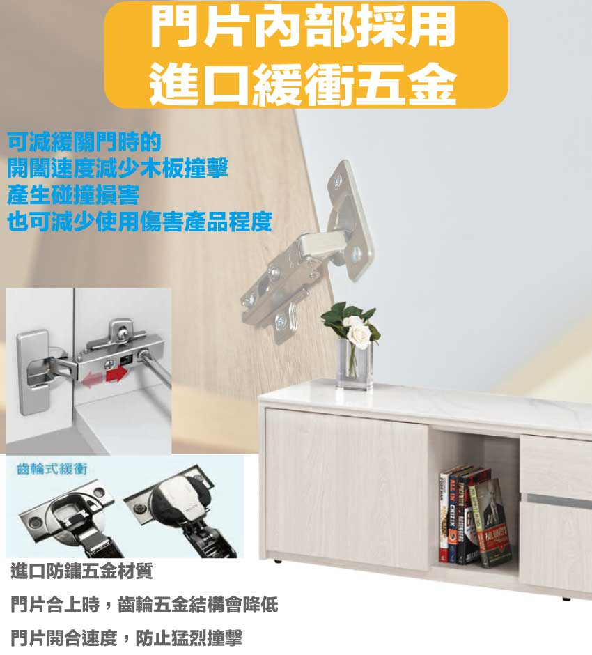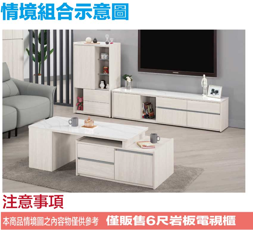 - ◆產品名稱:【綠家居】華爾雙色6尺岩板開門四抽電視櫃
