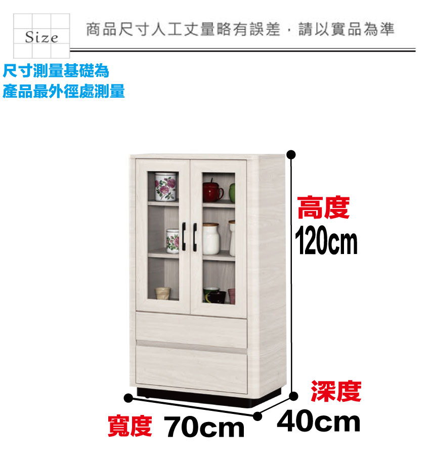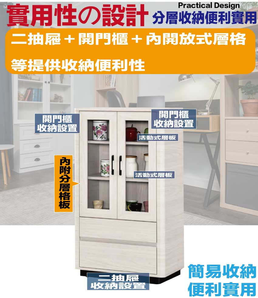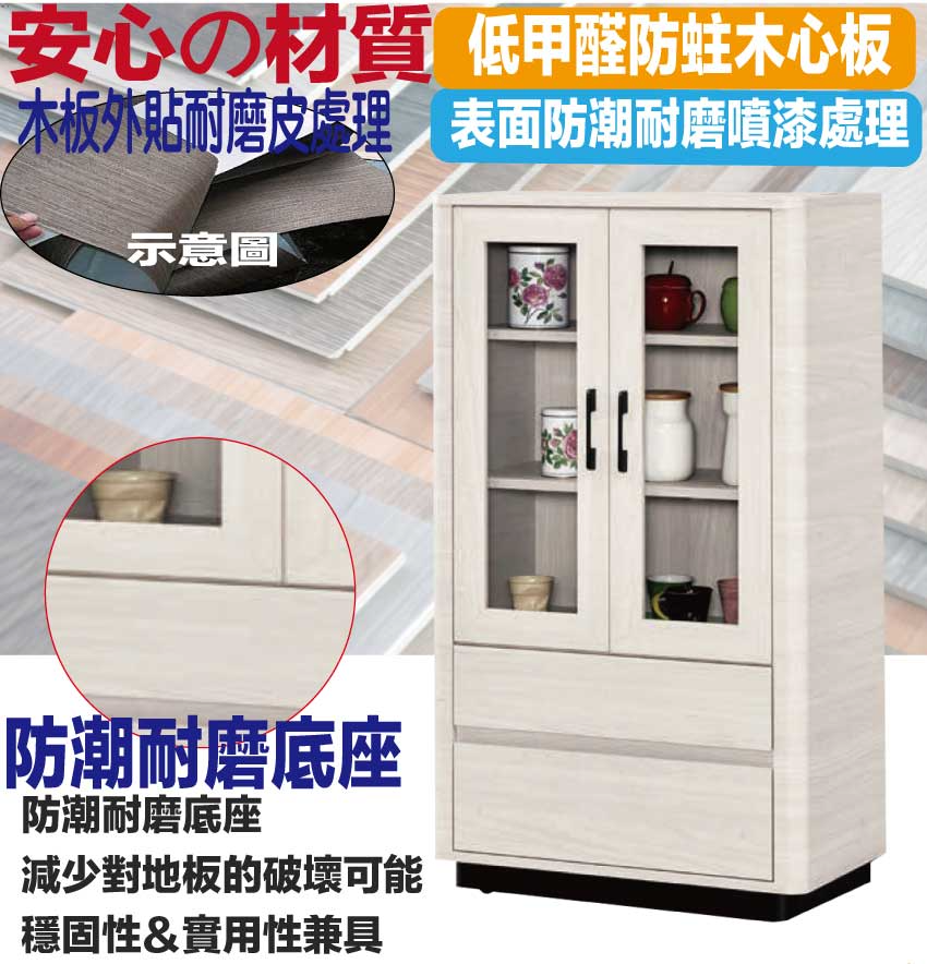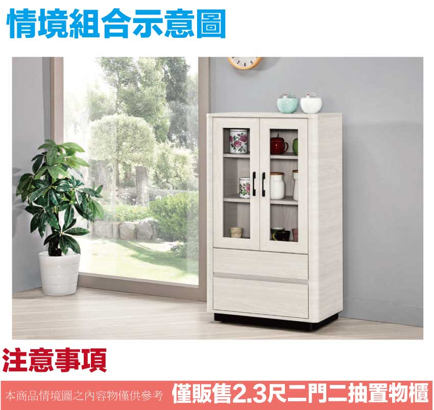 - ◆產品名稱:【綠家居】丹尼2.3尺二門二抽展示櫃