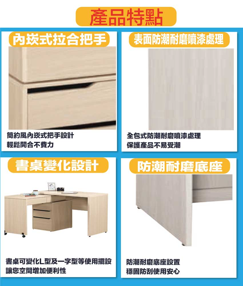 搭配採用五抽屜+內&外開放層格等收納空間設計