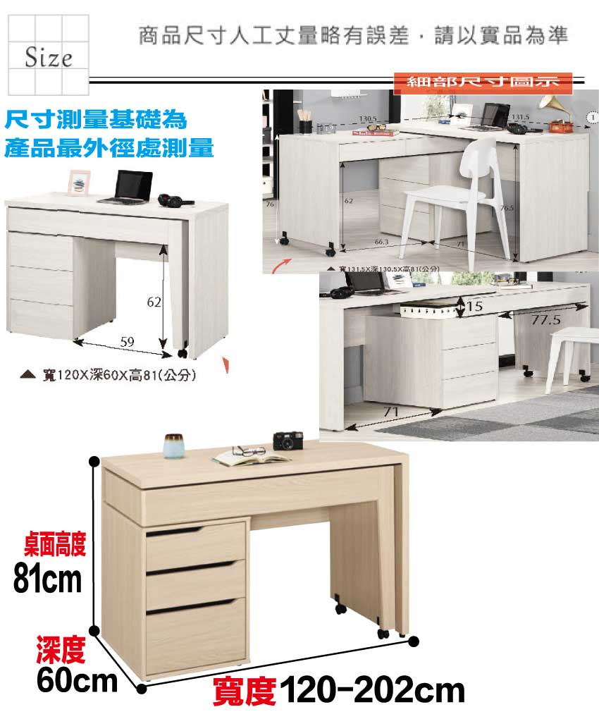 尺寸:(寬)120-202x(深)60x(高)81公分