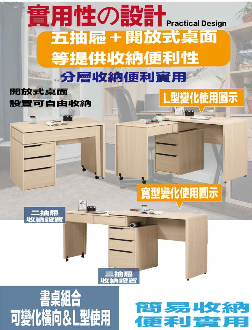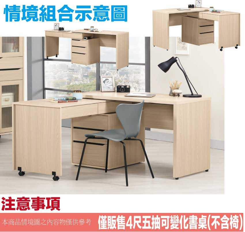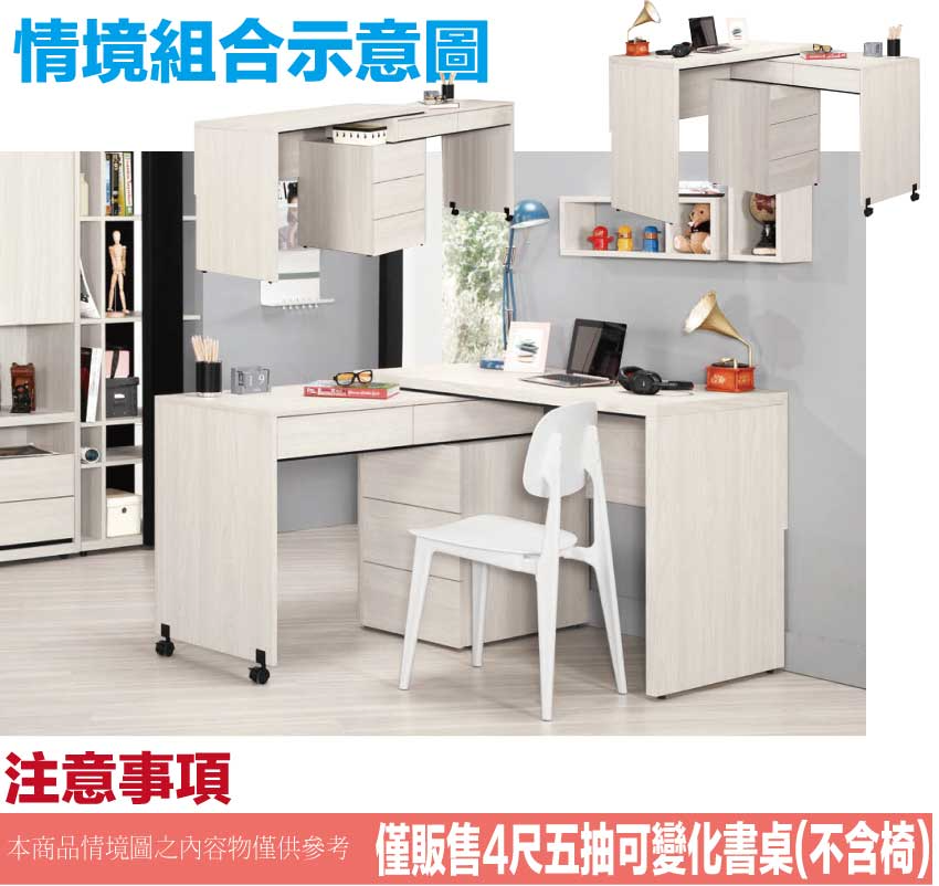 - ◆產品名稱:【綠家居】寶亞4尺五抽可伸縮書桌組合(二色可選+左&右向擺設可選)