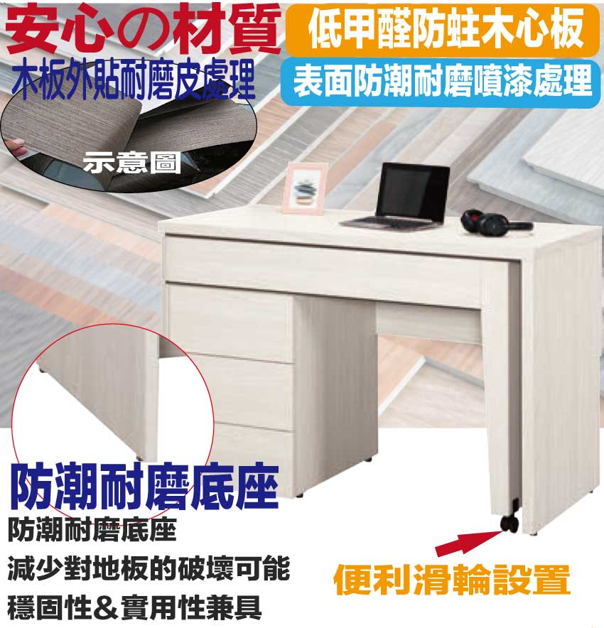 採用防蛀木心板+防潮耐磨底座+五金滑軌結構等安心材質製造