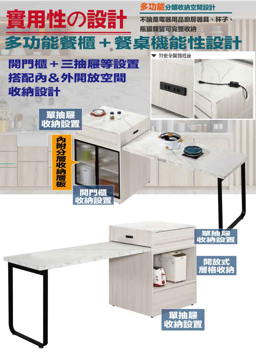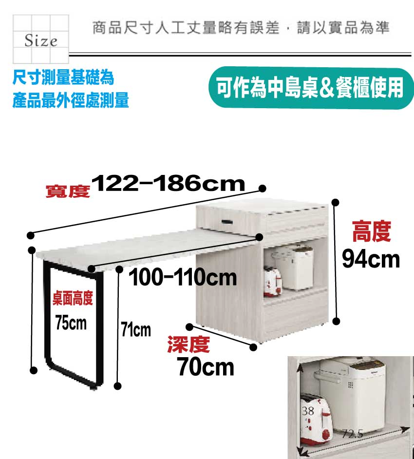 中島桌櫃桌面板可伸縮拉合122-186cm使用,讓您可依據實際使用狀況調整增加便利性