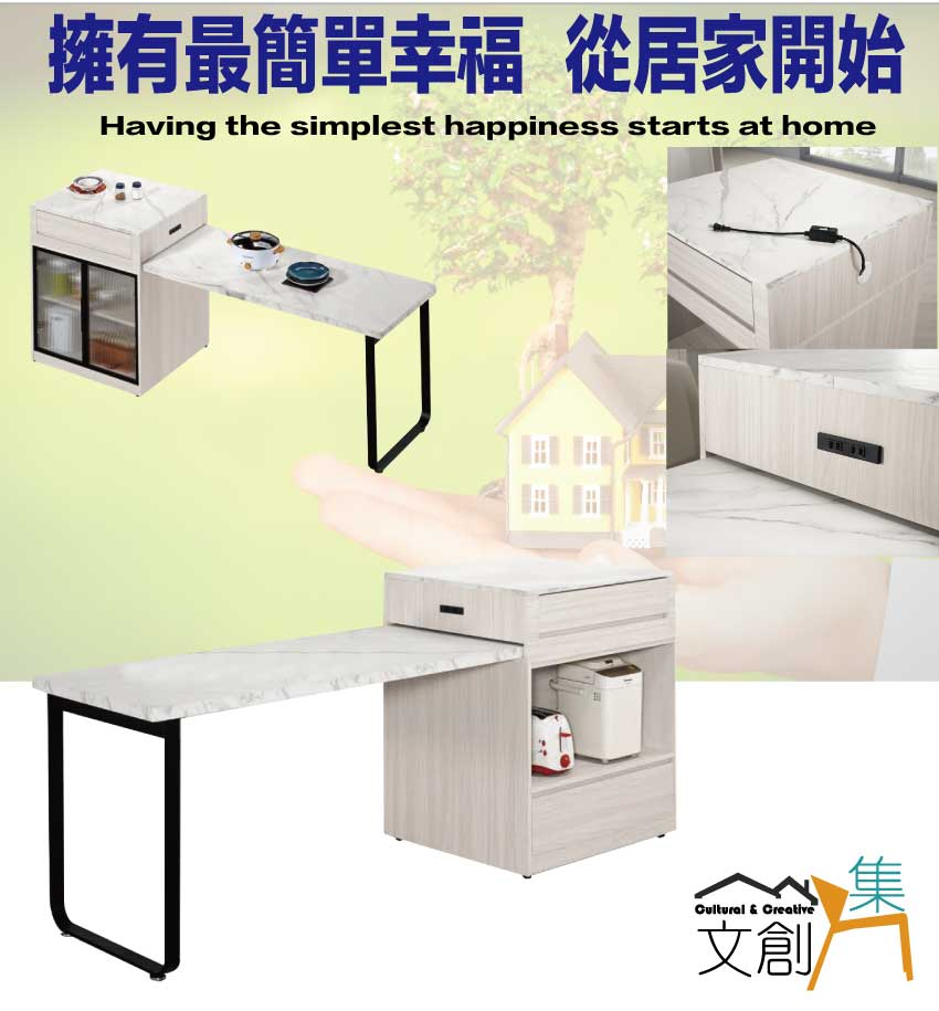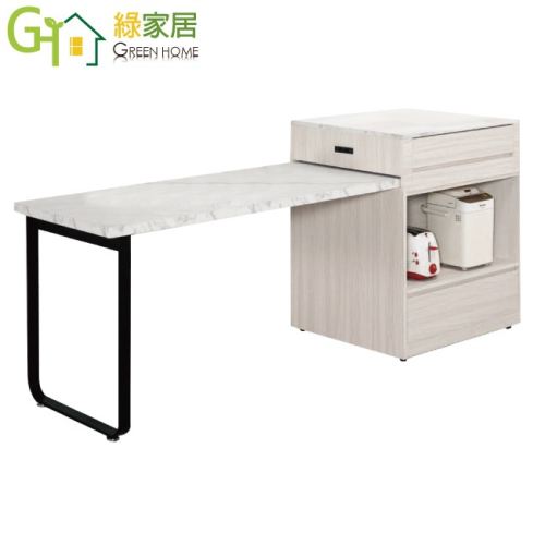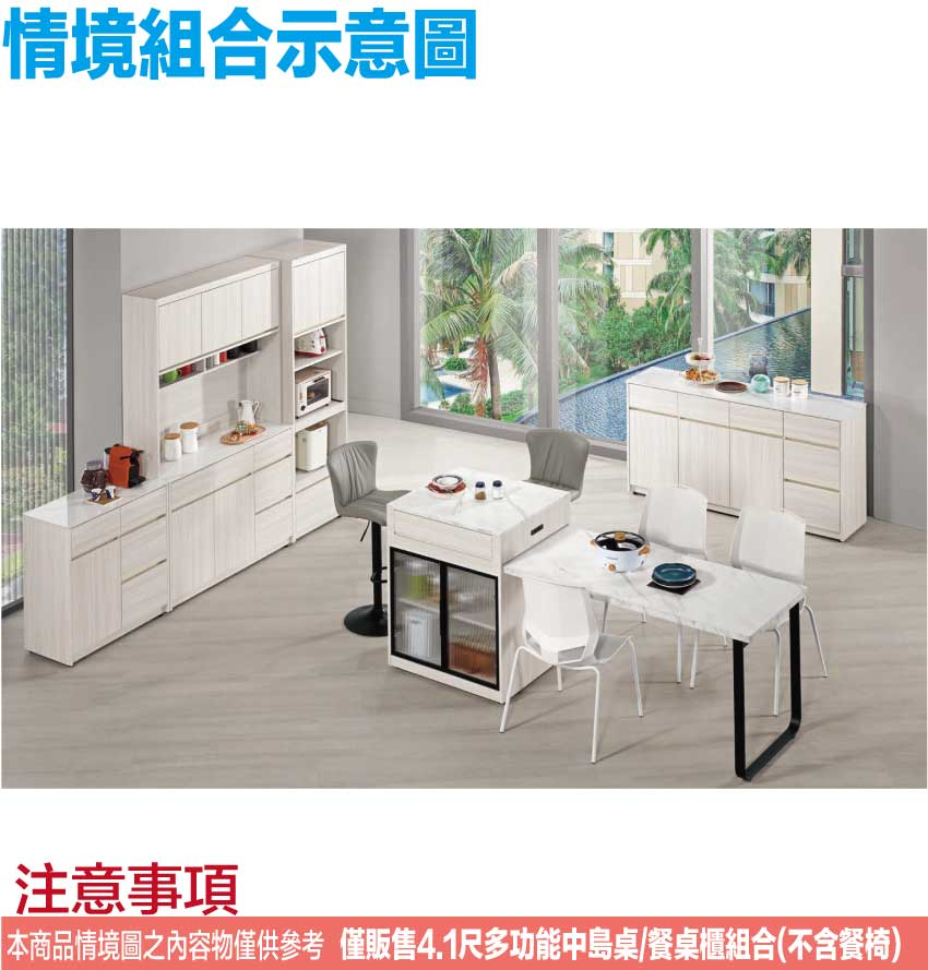 - ◆產品名稱:【綠家居】寶亞雙色4.1尺多功能中島桌櫃組合(桌面板可伸縮使用)
