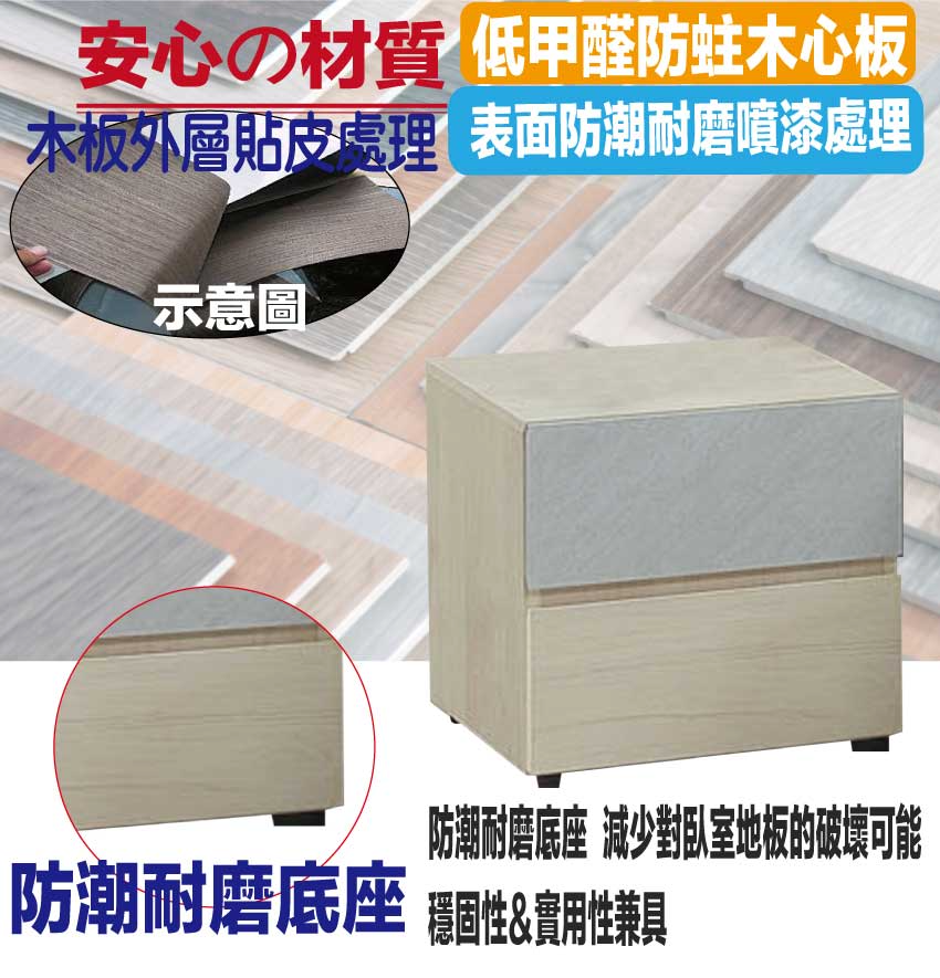 採用防蛀木心板+防潮耐磨底座+五金滑軌結構等安心材質製造