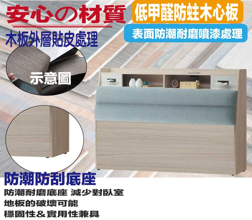 【綠家居】范巴5尺雙人耐磨皮革床頭箱(不含床底+不含床墊) 淺橡木紋色系+安心材質製造,使用放心+搭配居家更便利,採用防蛀木心板+防潮耐磨底座+耐磨耐刮皮革+高回彈泡棉等安心材質製造 ,外層採用防潮耐磨噴漆處理搭配床頭箱可掀式床枕板+內&外收納層格+便利插座設置等收納空間設計,全由專人配送到家,專業安心服務,替你省下更多時間!