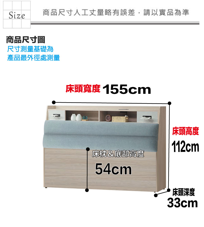 床頭尺寸:(寬)155x(深)33x(高)112/公分