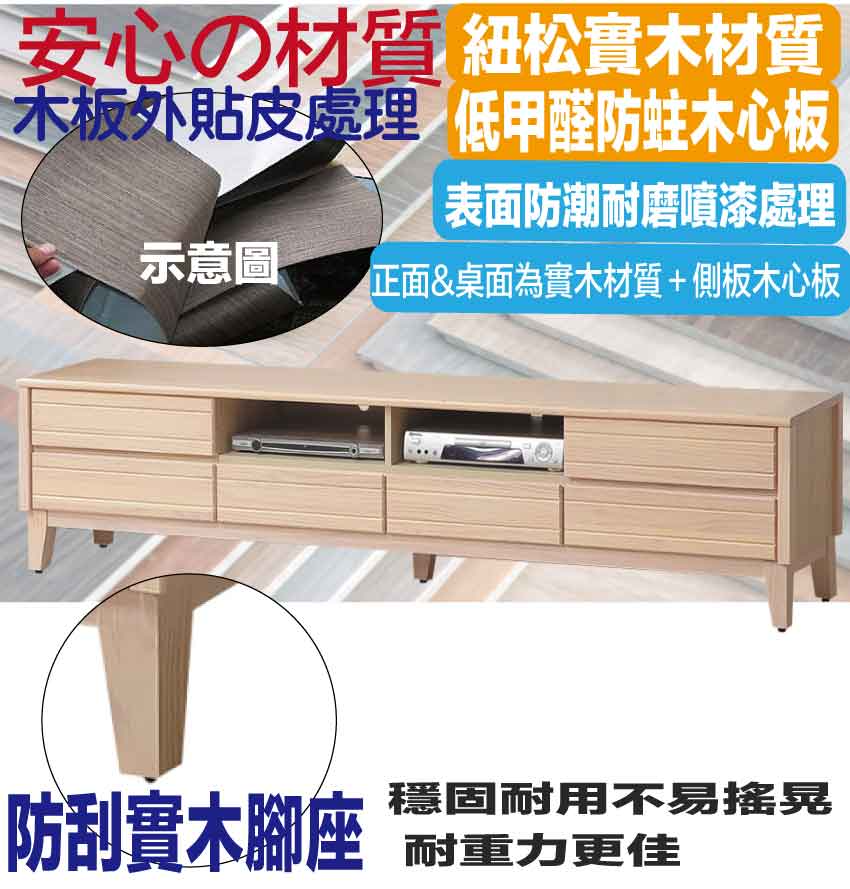 材質:紐松木實木+防蛀木心板+防刮實木腳座+五金滑軌結構