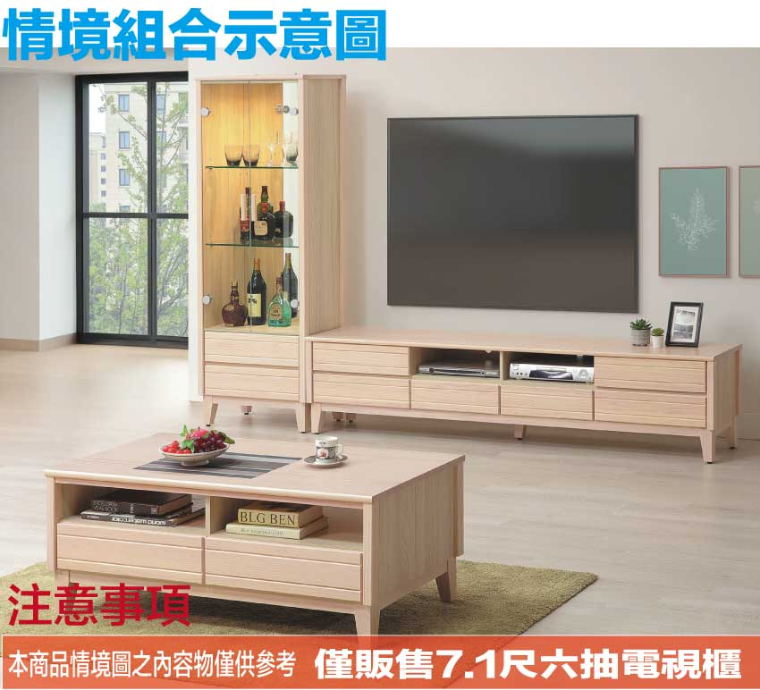 - ◆產品名稱:【綠家居】巴斯卡7.1尺實木六抽電視櫃