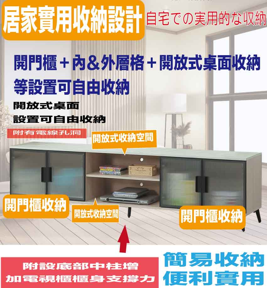 - ◆產品名稱:【綠家居】夏卡斯6.1尺仿石紋四門電視櫃