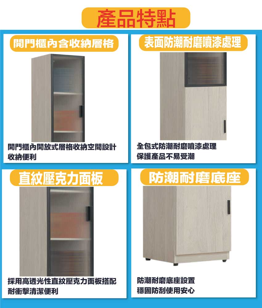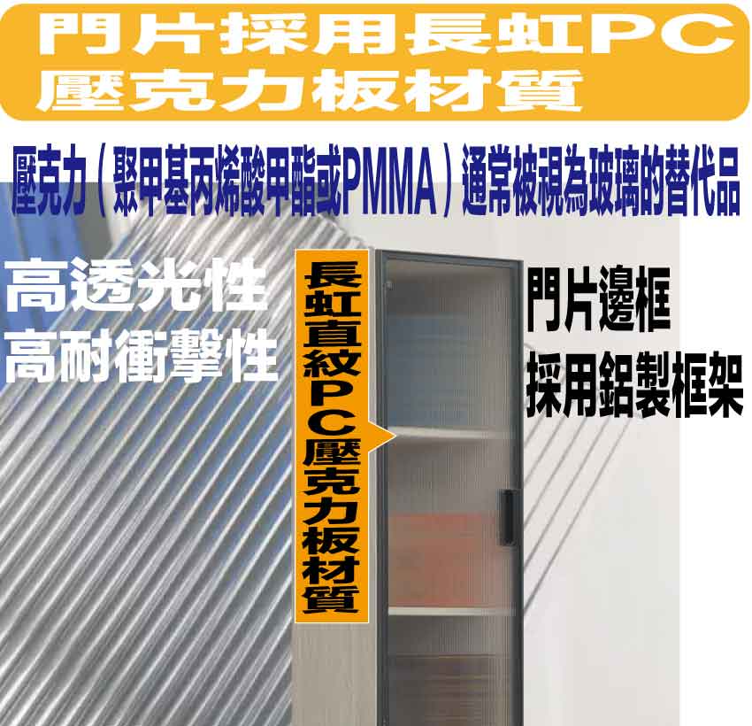 材質:防蛀木心板+防夾手緩衝門片五金+防潮耐磨底座+鋁製邊框+長虹PC壓克力面板