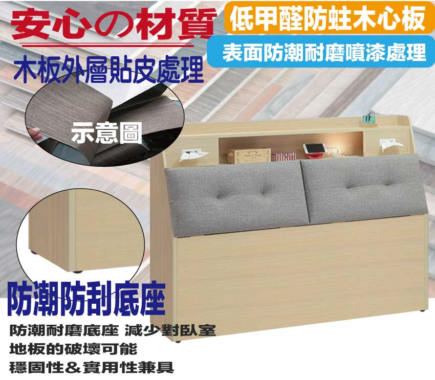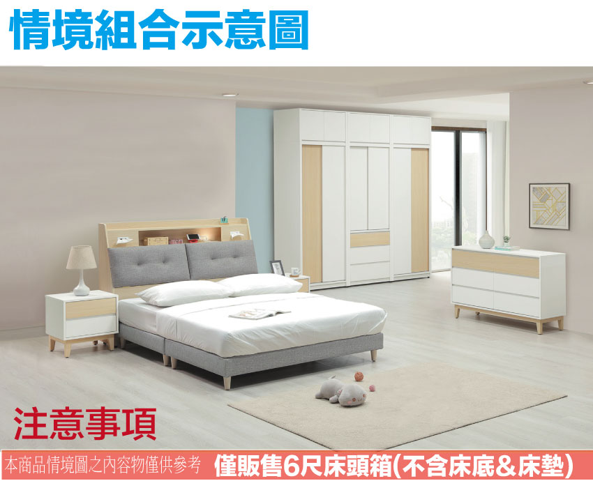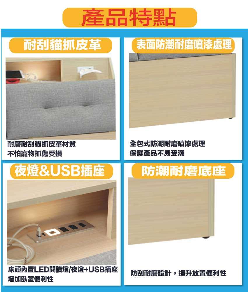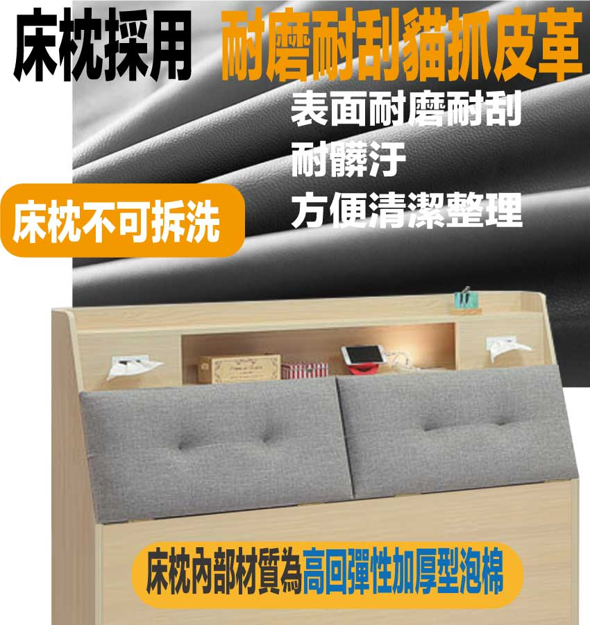 - ◆產品名稱:【綠家居】歐瑞6尺雙人加大貓抓皮夜燈床頭箱(不含床底+不含床墊)