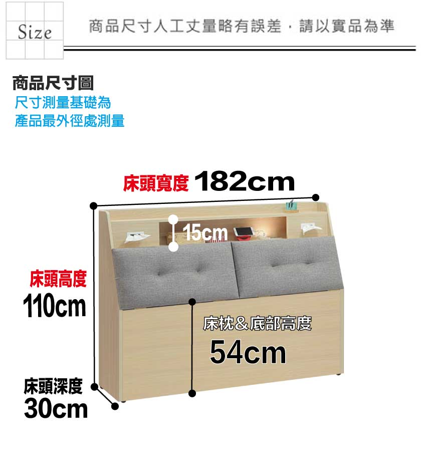 床頭尺寸:(寬)182x(深)30x(高)110/公分