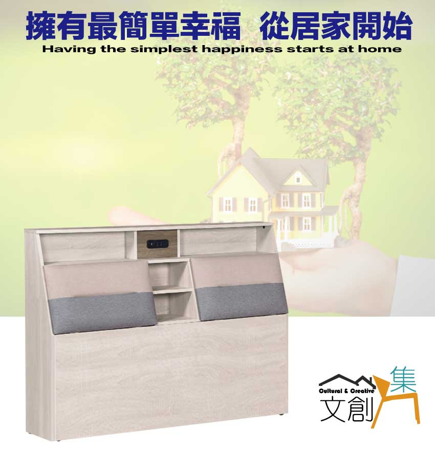 搭配床頭採用可掀式床枕板+內&外收納空間+便利插座設置等收納空間設計