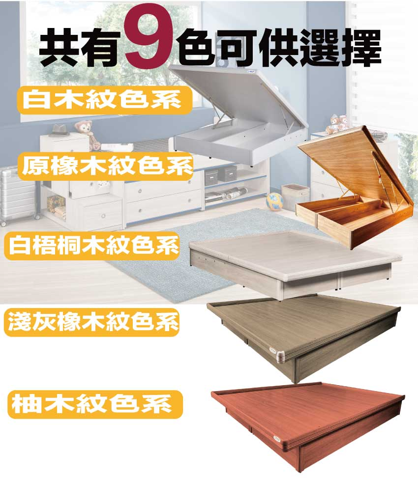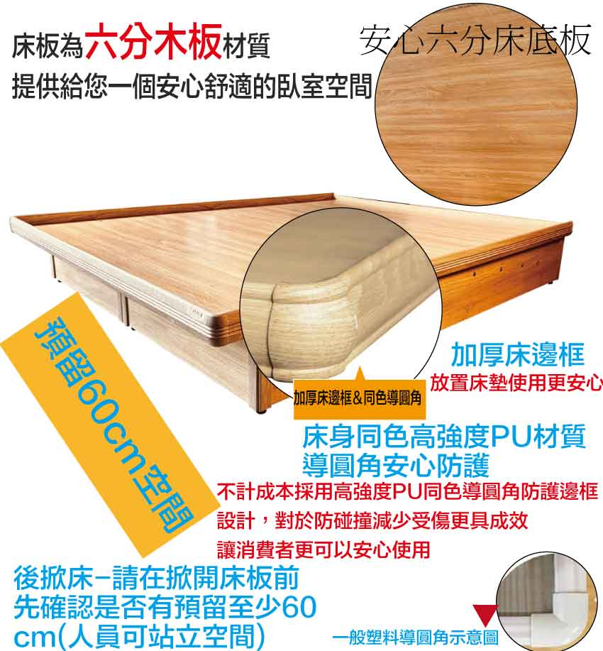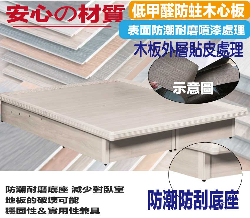 材質:防蛀木心板+六分木床板+防刮耐磨底座+高磅數氣壓棒(採用330LBS磅數以上氣壓棒)