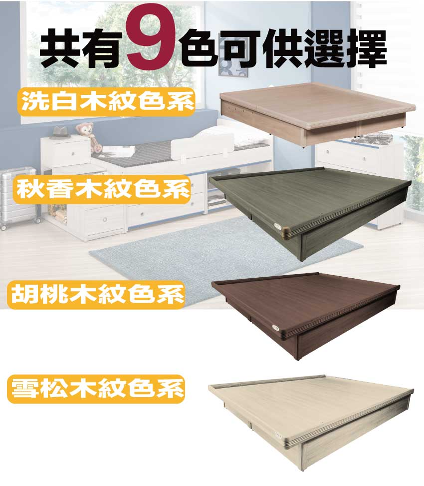 【綠家居】梅威安全扣5尺雙人後掀床底/掀床(九色可選+高係數氣壓棒+安全扣設計) 九色可選+加厚防撞邊框+高安全性機能+安心材質製造,整體採用防蛀木心板+六分木床板+防刮耐磨底座+高磅數氣壓棒(採用330LBS磅數以上氣壓棒)等安心材質製造,產品外層採用防潮耐磨噴漆處理搭配採用後掀式床底板+內部收納層格設置等便利機能設計,全由專人配送到家,專業安心服務,替你省下更多時間!