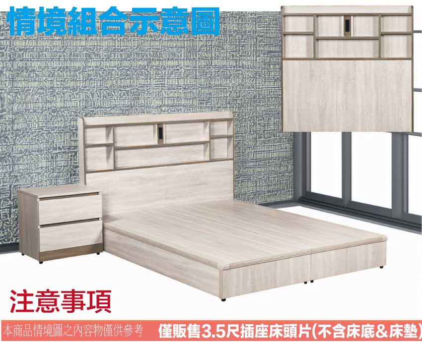 - ◆產品名稱:【綠家居】梅威3.5尺單人插座床頭片(不含床底+不含床墊)