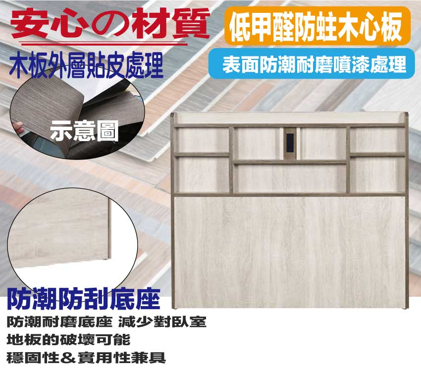 採用防蛀木心板+防潮耐磨底座等安心材質製造