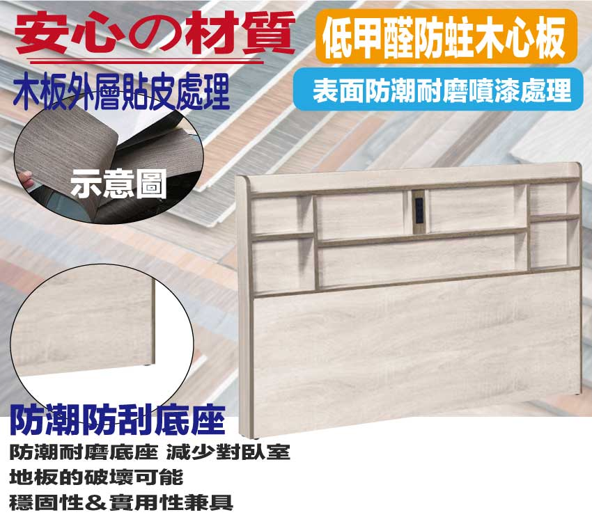 採用防蛀木心板+防潮耐磨底座等安心材質製造
