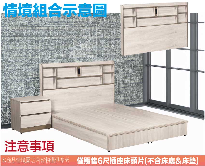 - ◆產品名稱:【綠家居】梅威6尺雙人加大插座床頭片(不含床底+不含床墊)