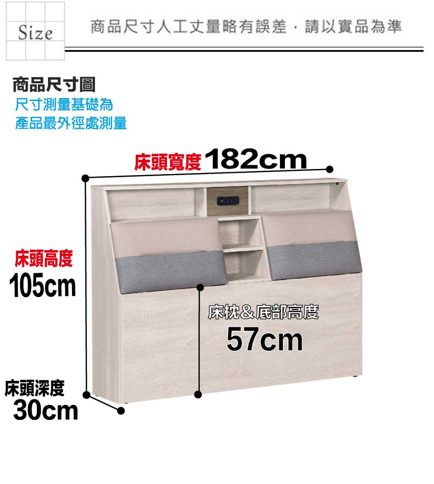 床頭尺寸:(寬)182x(深)30x(高)105/公分