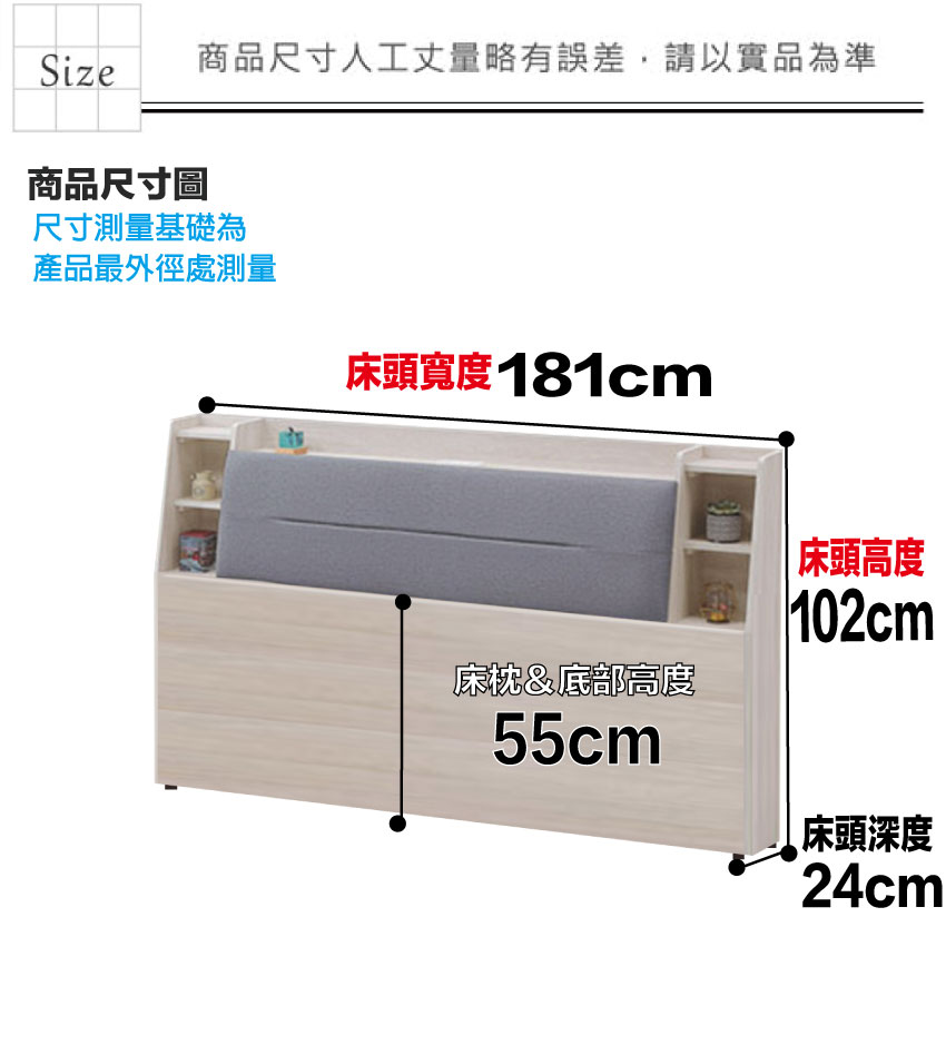 床頭尺寸:(寬)181x(深)24x(高)102/公分