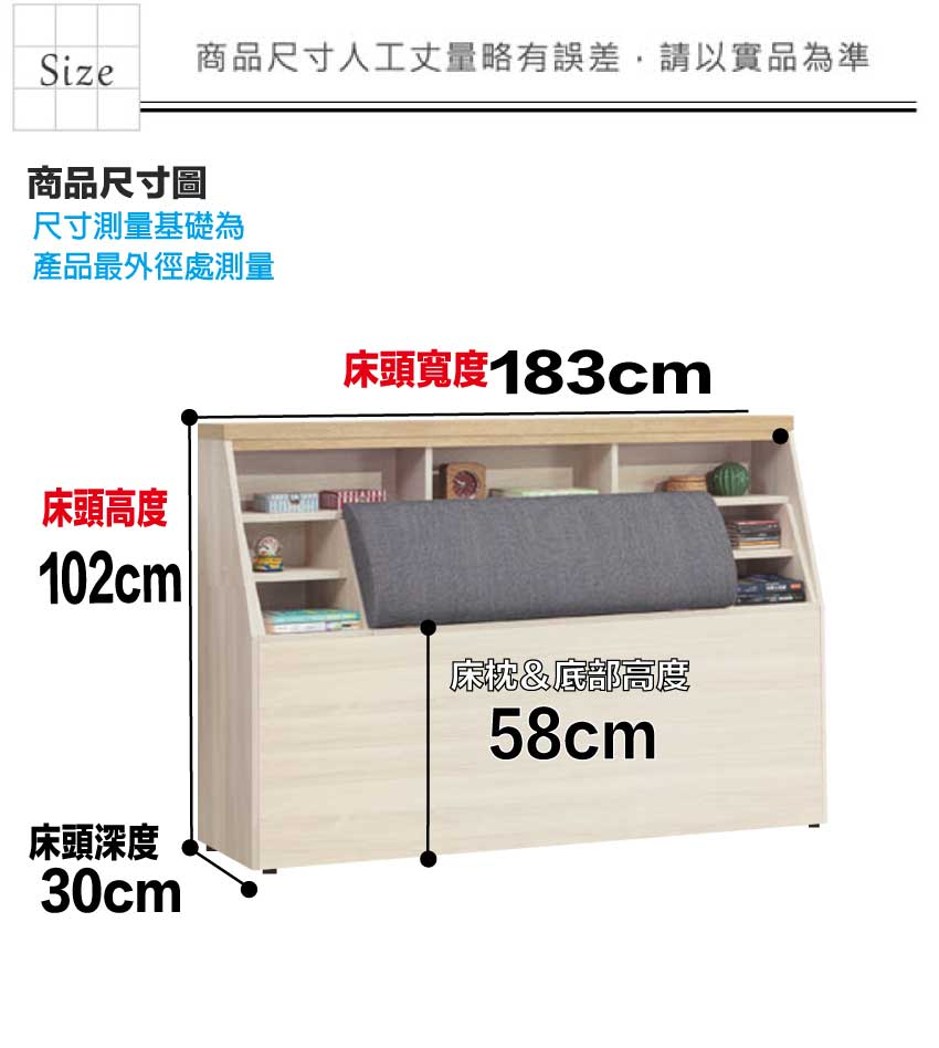 床頭尺寸:(寬)183x(深)30x(高)102/公分