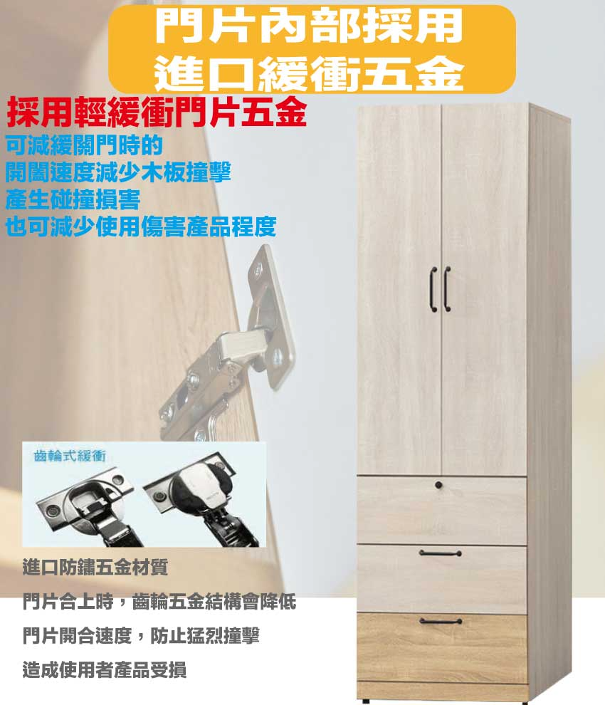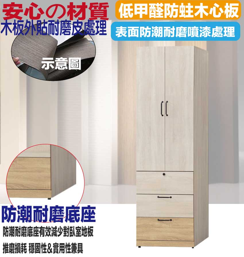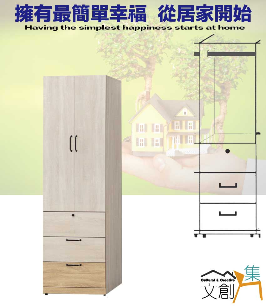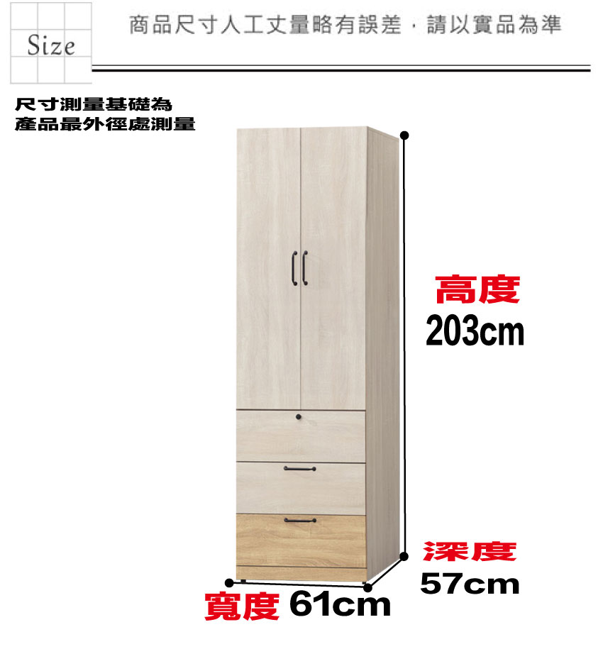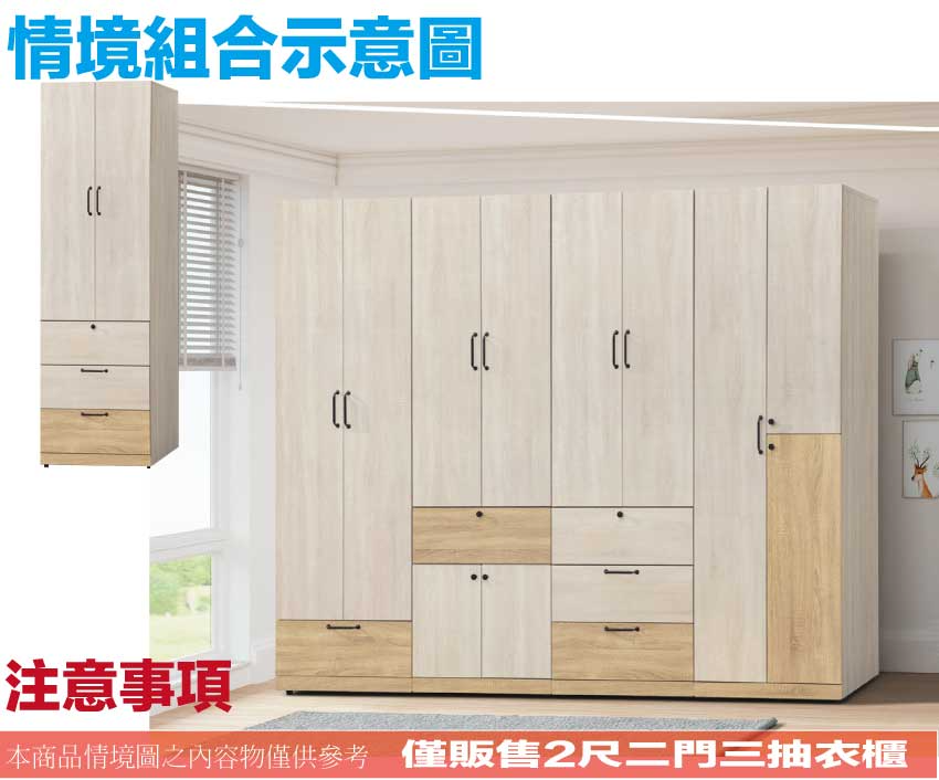 - ◆產品名稱:【綠家居】威比爾雙色2尺二門三抽衣櫃