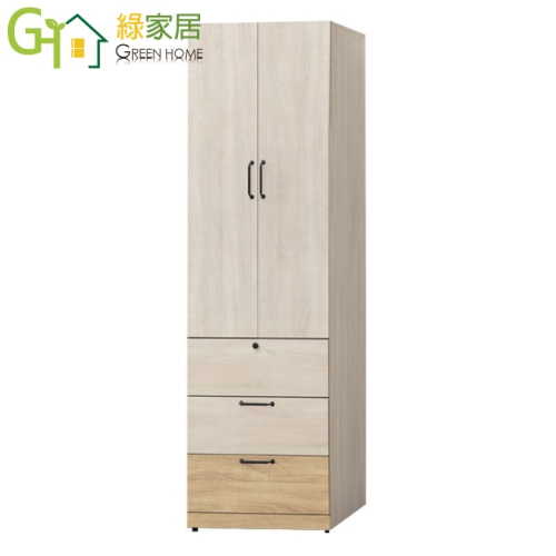 【綠家居】威比爾雙色2尺二門三抽衣櫃 木紋雙色系+安心材質製造,使用放心+搭配居家更便利,採用防蛀木心板+防潮耐磨底座+防夾手緩衝門片五金+五金滑軌結構等安心材質製造 ,外層採用防潮耐磨噴漆處理搭配採用開門櫃+吊衣桿+三抽屜+內開放層格等收納空間設計,全由專人配送到家,專業安心服務,替你省下更多時間!
