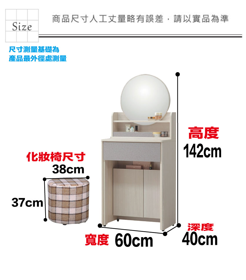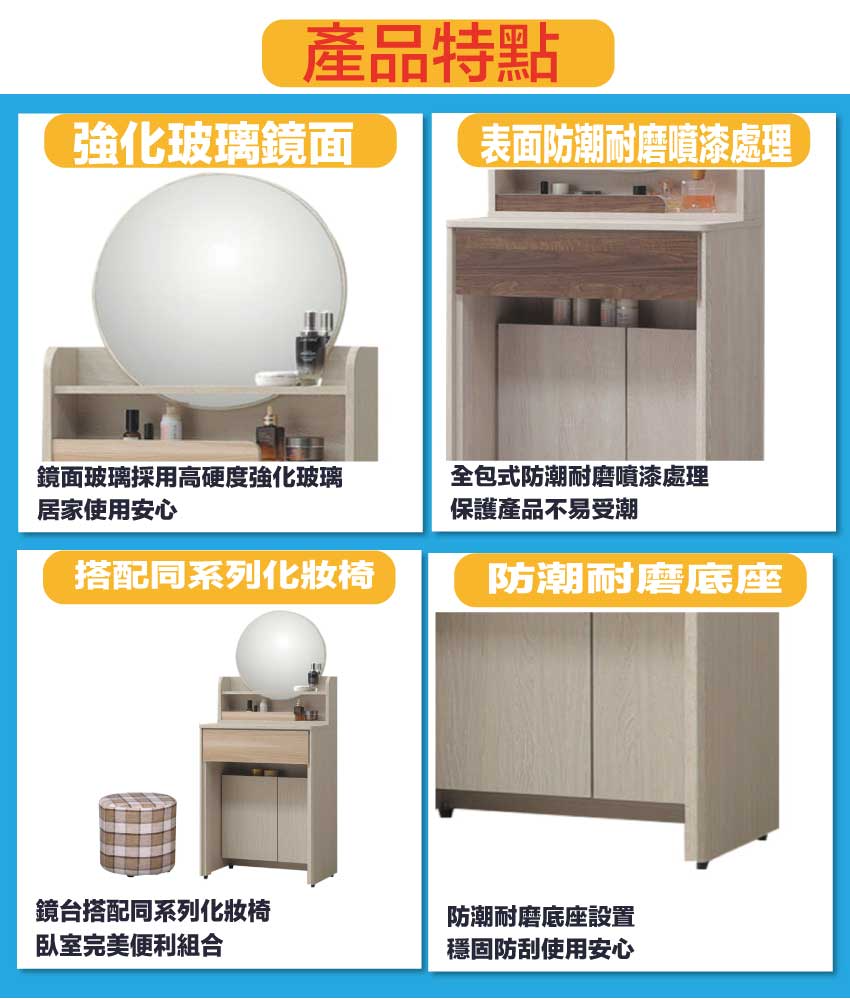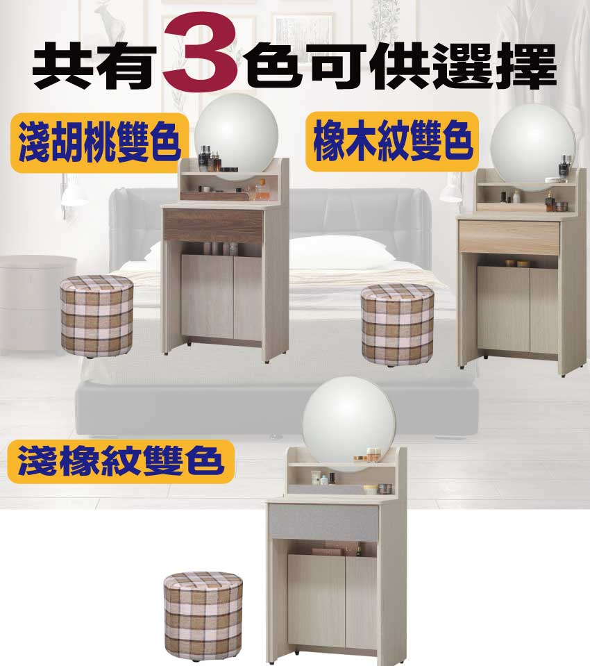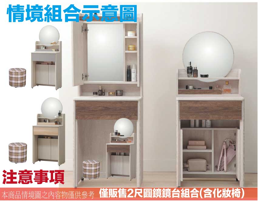 - ◆產品名稱:【綠家居】瑪爾2尺圓框鏡面鏡台組合(三色可選+含化妝椅)