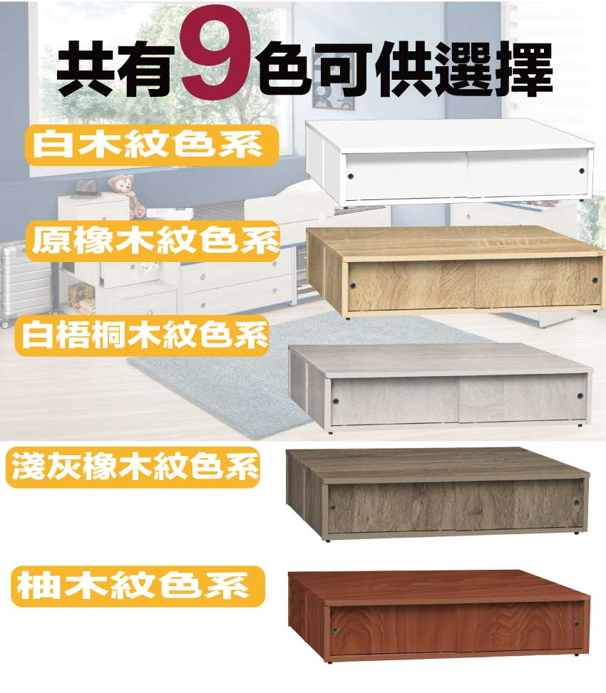 - ◆產品名稱:【綠家居】艾柏5尺雙人雙邊四拉門收納加高床底(九色可選)