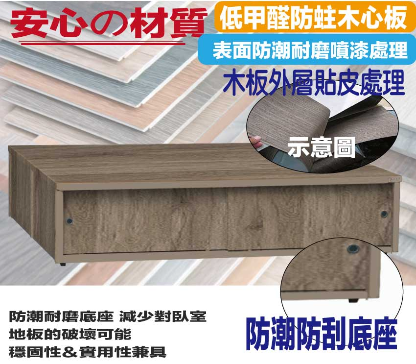 材質:防蛀木心板+六分木床板+防潮耐磨底座