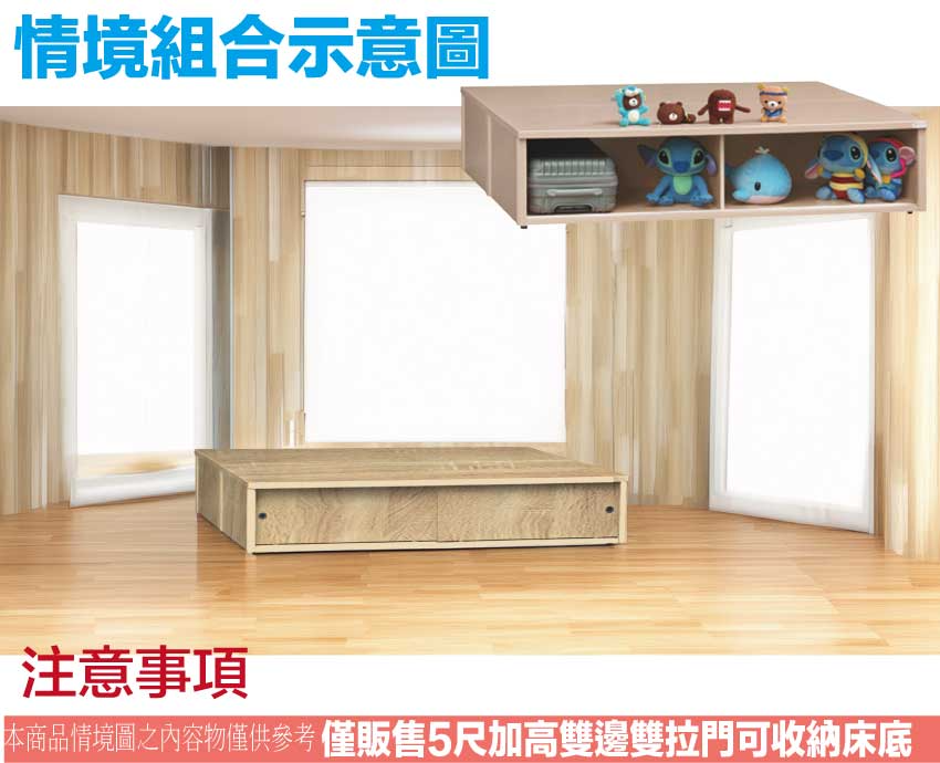 請注意 此收納床台組合搭配床頭&收納床底顏色有稍微些許色差非完全相同顏色 購買前請先確認是否能接受些微顏色差異再行購買,謝謝!