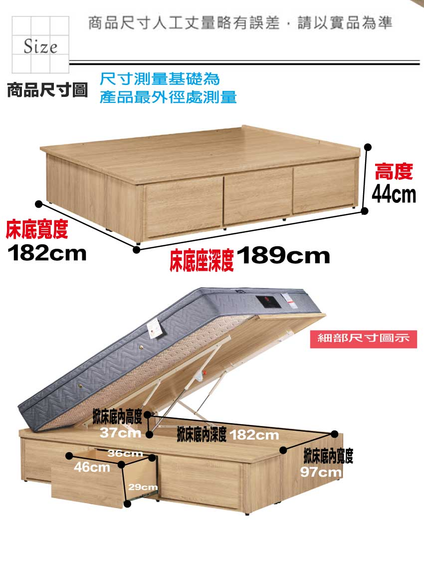 - ◆產品名稱:【綠家居】梅威加高版6尺雙人加大安全扣三抽&後掀床底/掀床(九色可選+高係數氣壓棒+安全扣設計)