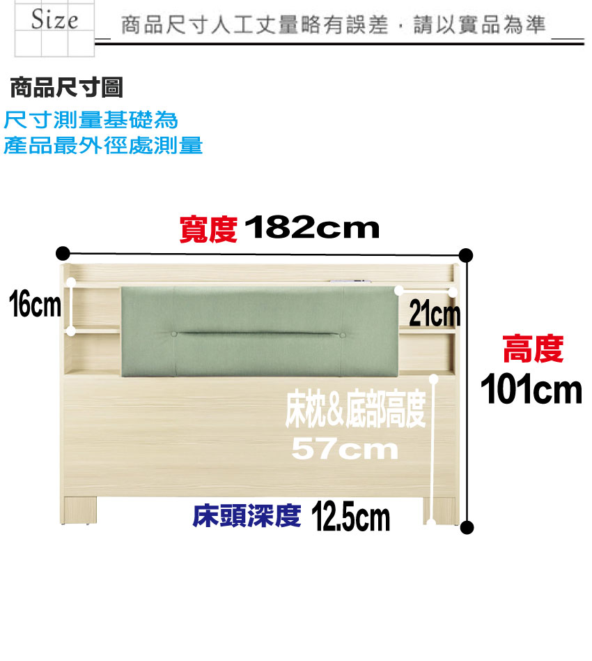 床頭尺寸:(寬)182x(深)12.5x(高)101/公分
