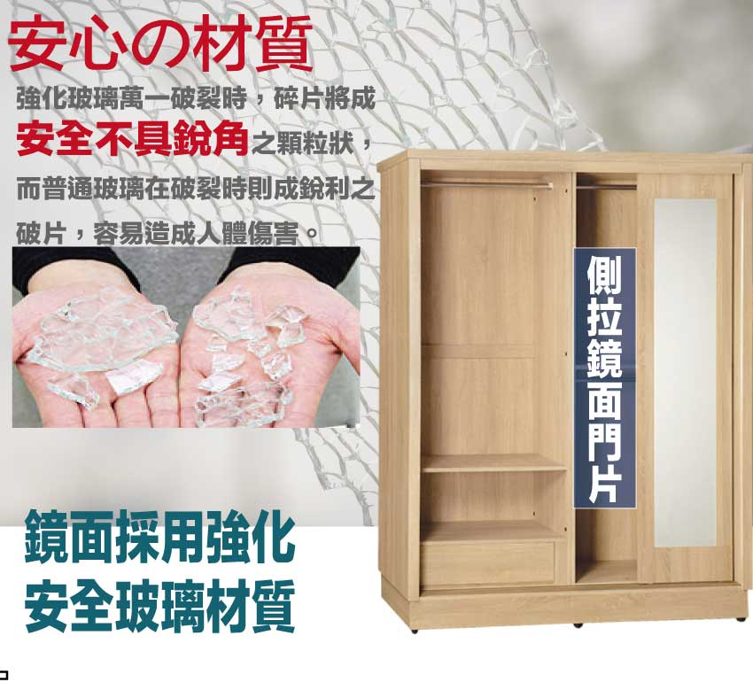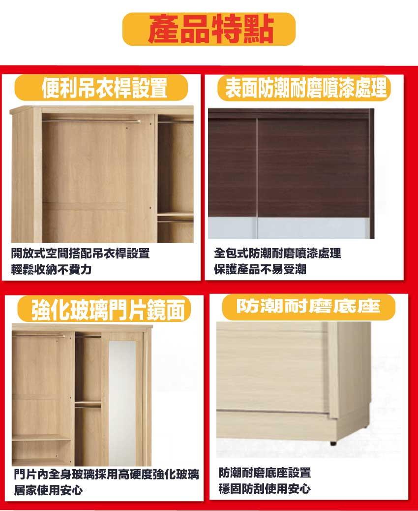 採用防蛀木心板+防潮耐磨底座+五金滑軌結構+強化玻璃鏡面等安心材質製造