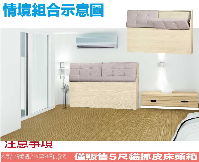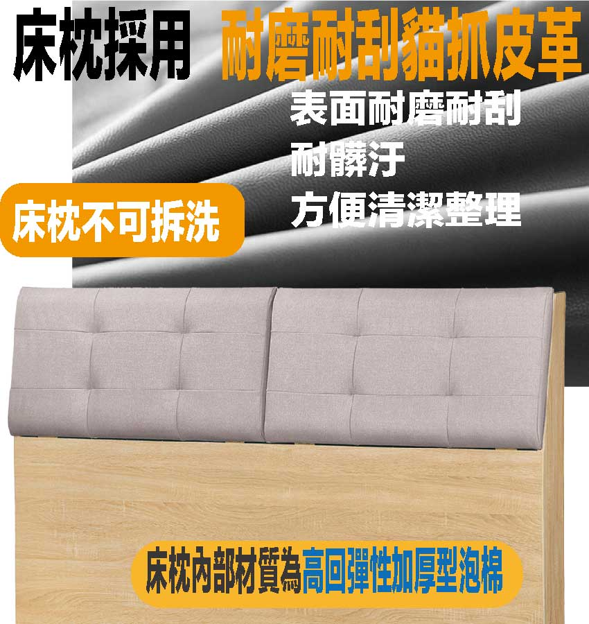 - ◆產品名稱:【綠家居】金陵5尺雙人貓抓皮革床頭箱(三色可選)