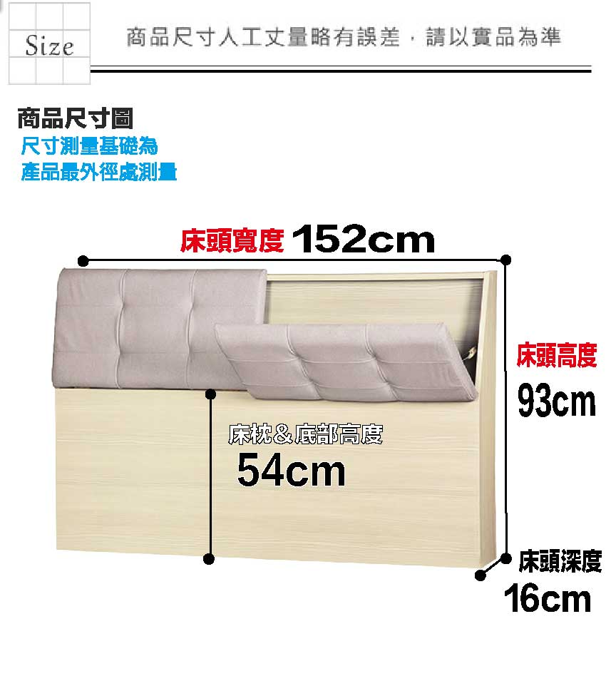 床頭尺寸:(寬)152x(深)16x(高)93/公分