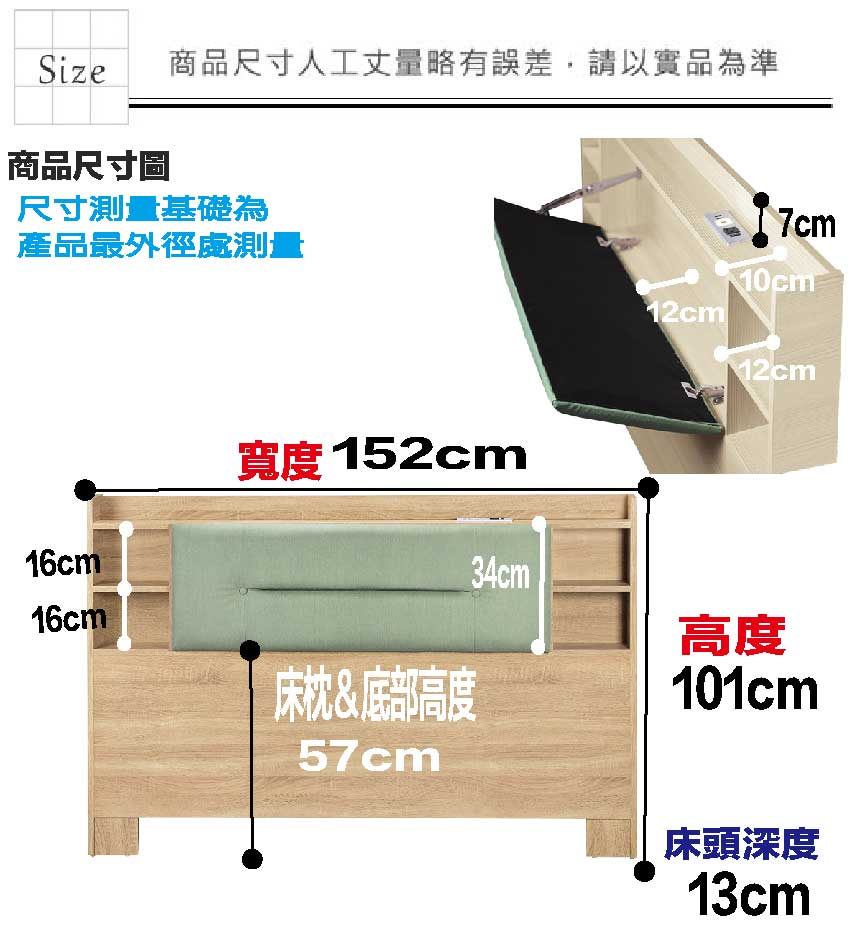 床頭尺寸:(寬)152x(深)13x(高)101/公分
