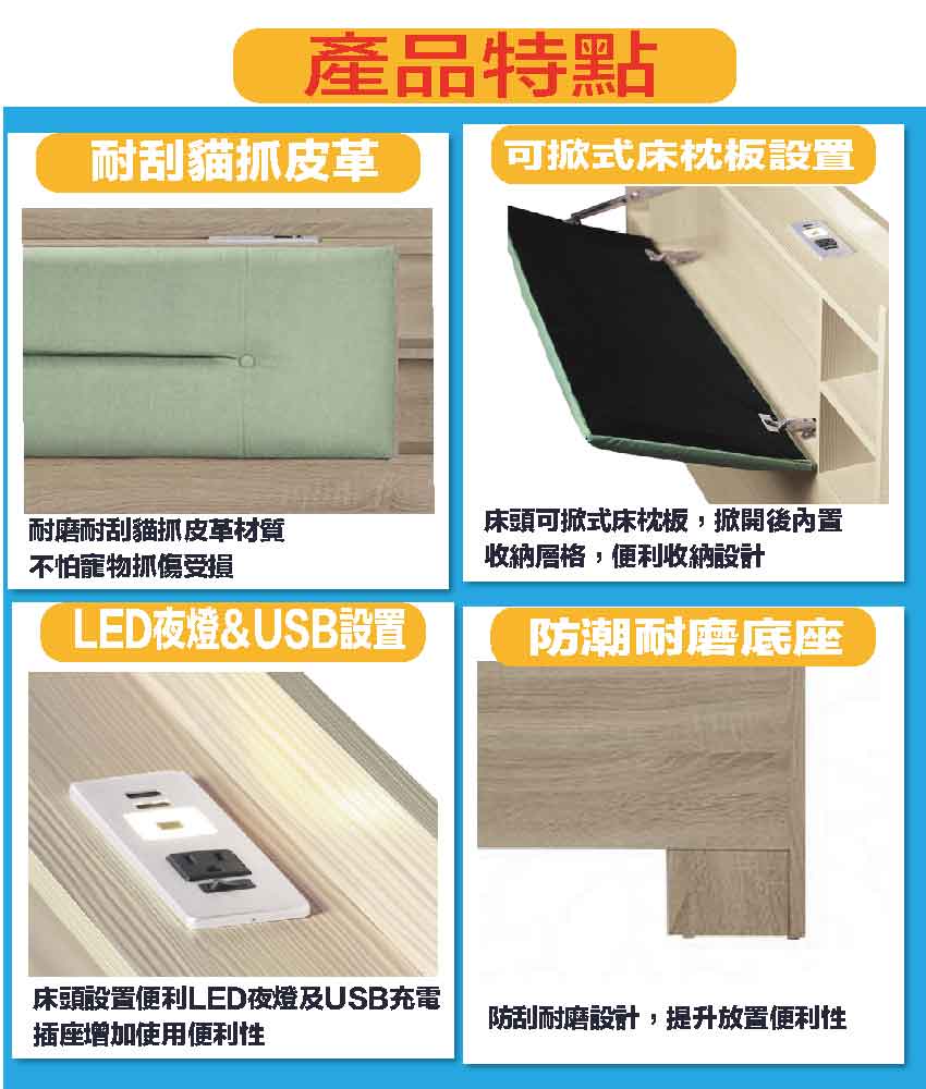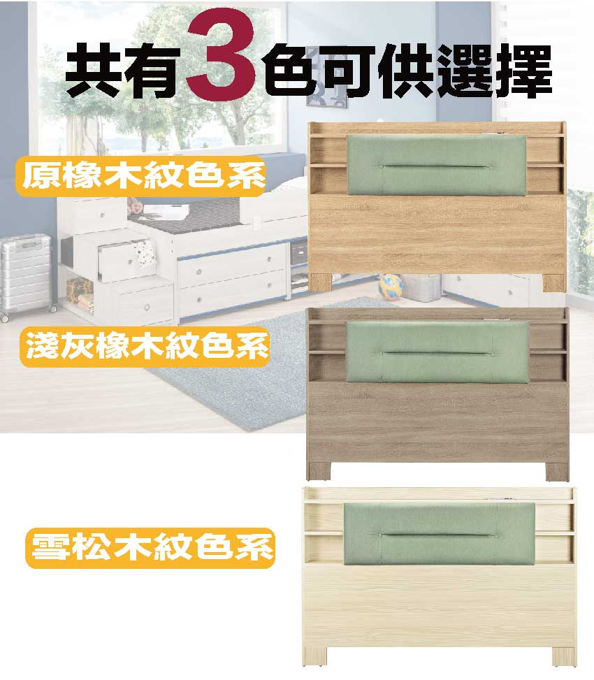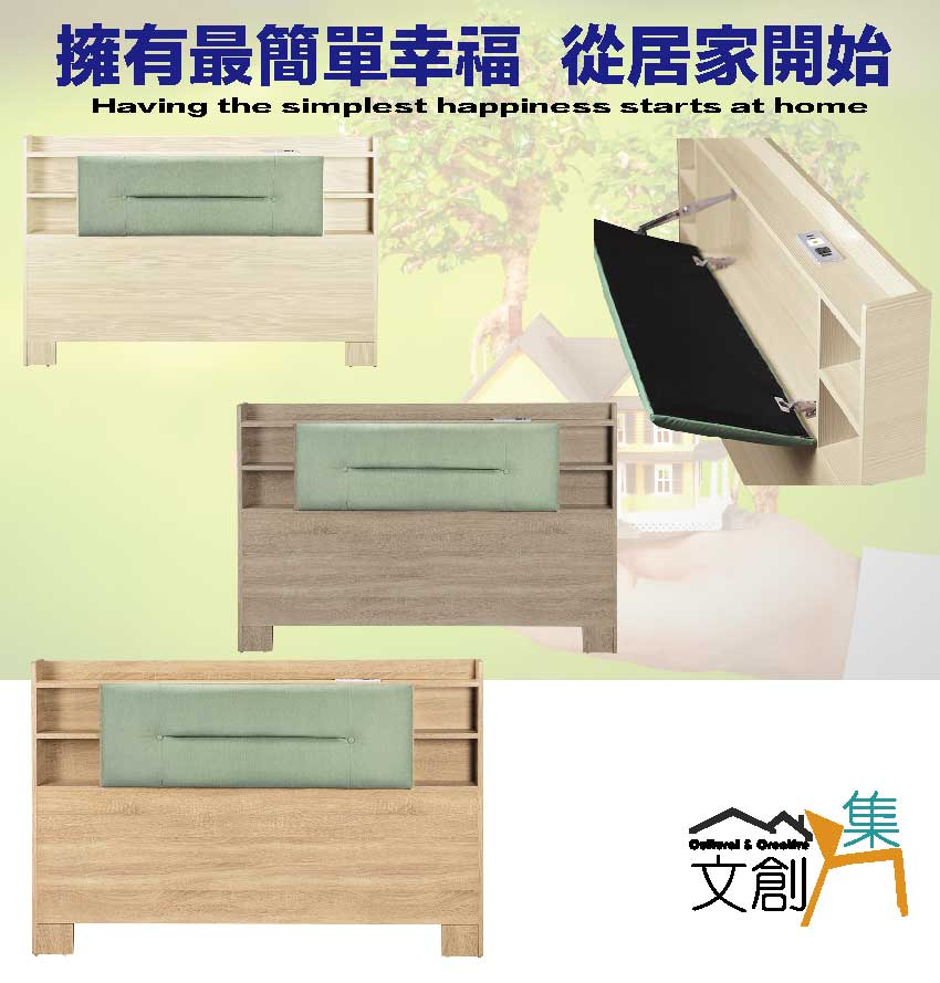 搭配床頭採用可掀式床枕板+內&外收納空間等收納空間設計