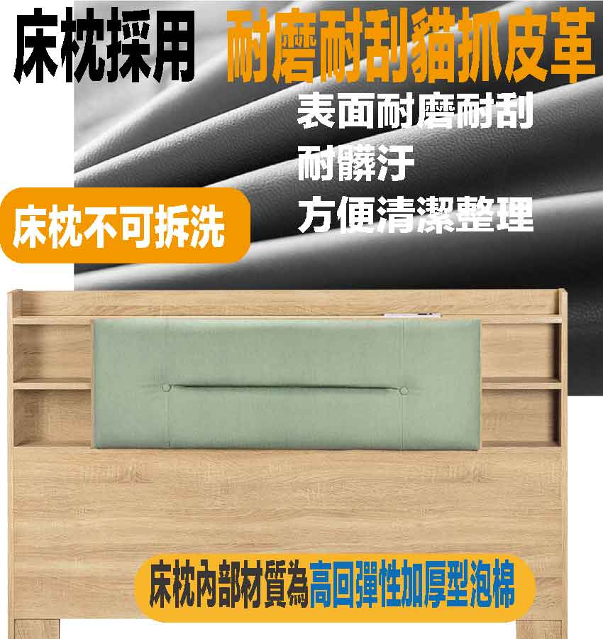 【綠家居】海莉5尺雙人貓抓皮革床頭箱(三色可選) 三色可選+安心材質製造,使用放心+搭配居家更便利,採用防蛀木心板+防潮耐磨底座+耐磨貓抓皮革+高回彈泡棉等安心材質製造 ,外層採用防潮耐磨噴漆處理搭配床頭採用可掀式床枕板+內&外收納空間等收納空間設計,全由專人配送到家,專業安心服務,替你省下更多時間!