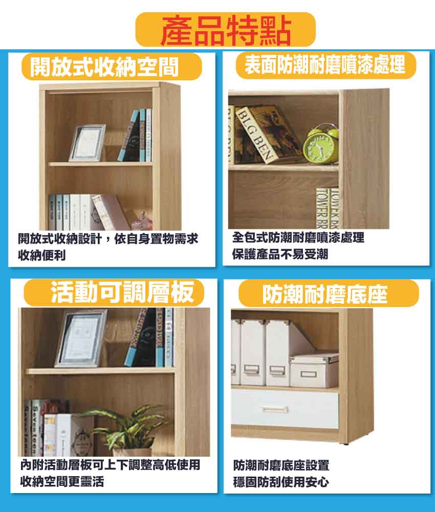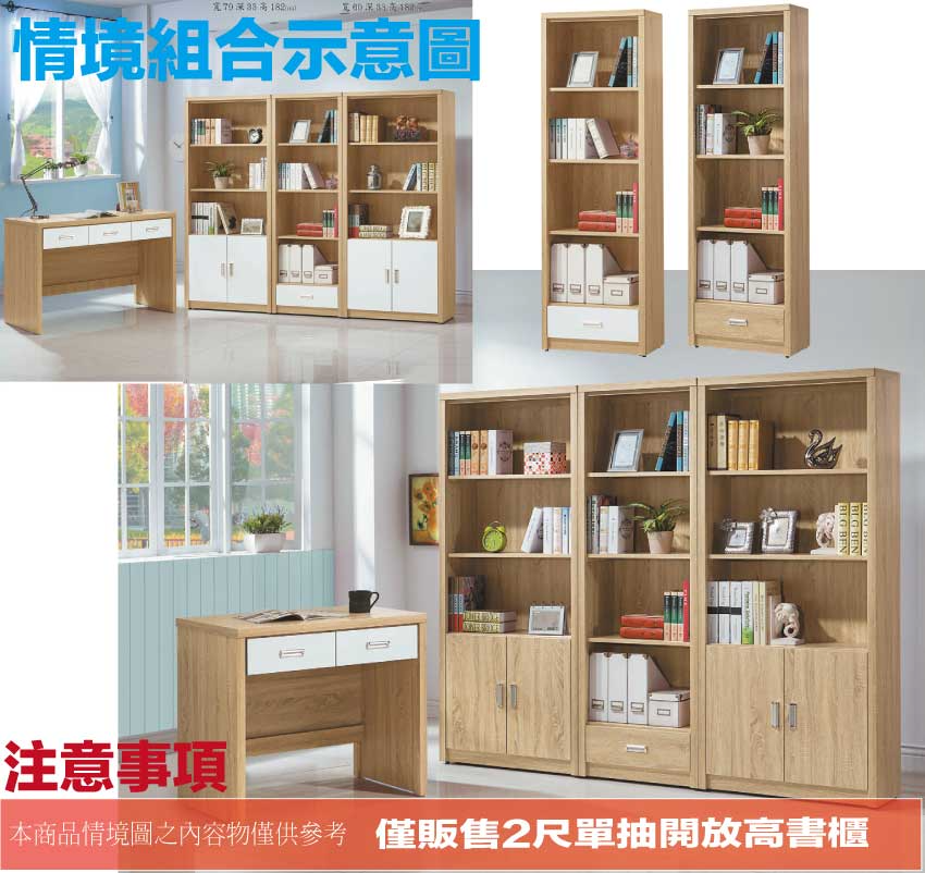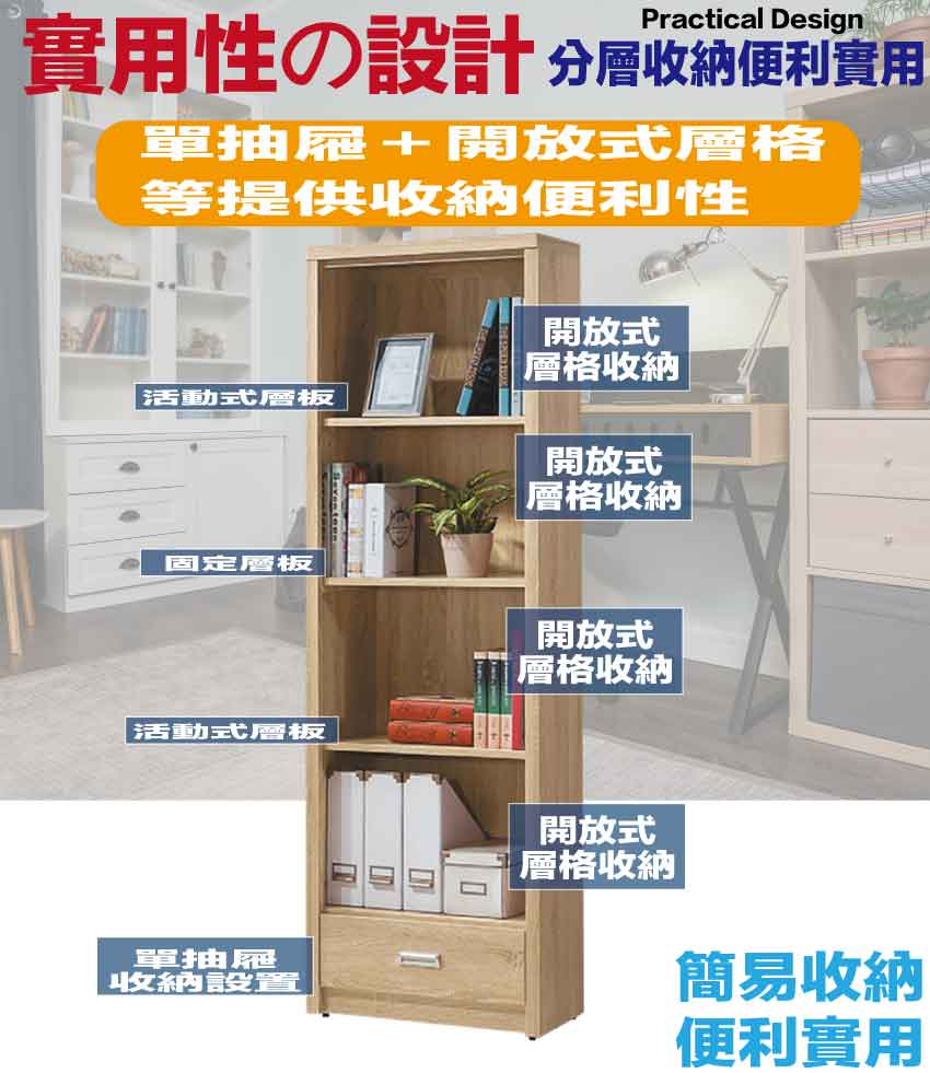 - ◆產品名稱:【綠家居】慕容2尺四格單抽開放書櫃(二色可選)
