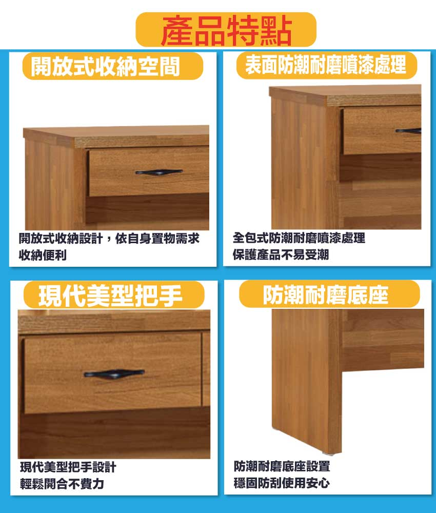 搭配採用二抽屜+開放式桌面等收納空間設計