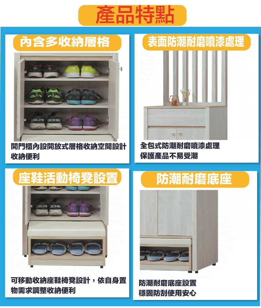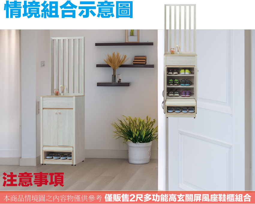 - ◆產品名稱:【綠家居】瑞瑟雙色2尺二門單抽屏風座鞋櫃組合