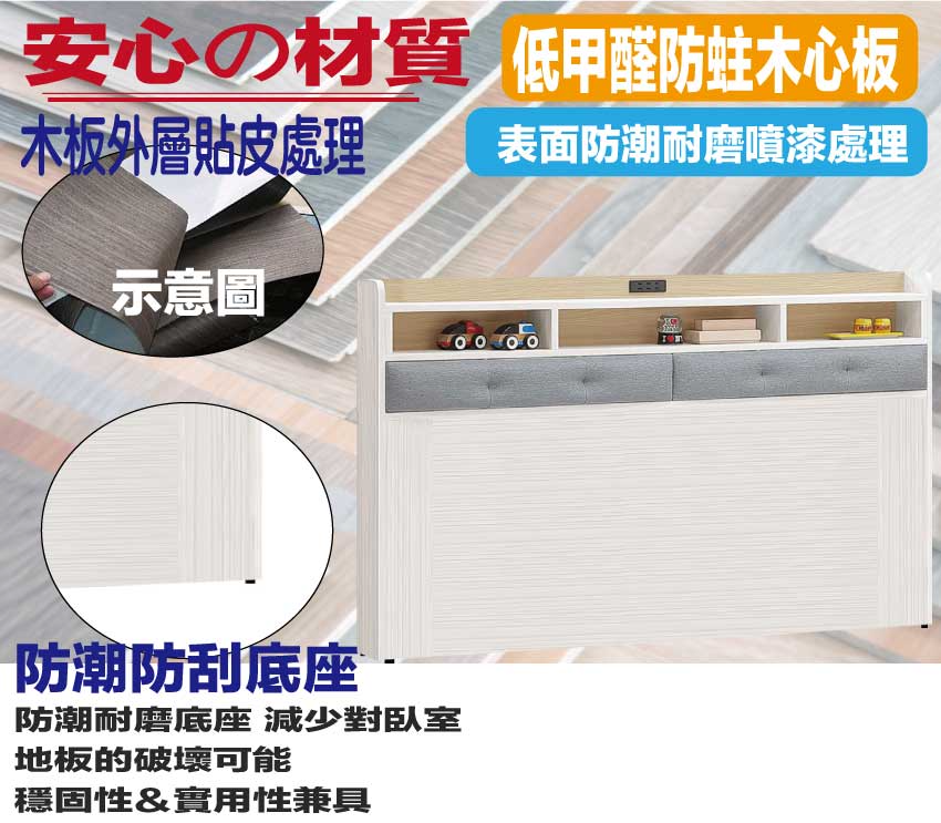 材質:防蛀木心板+防潮耐磨底座+耐磨耐刮皮革+高回彈泡棉