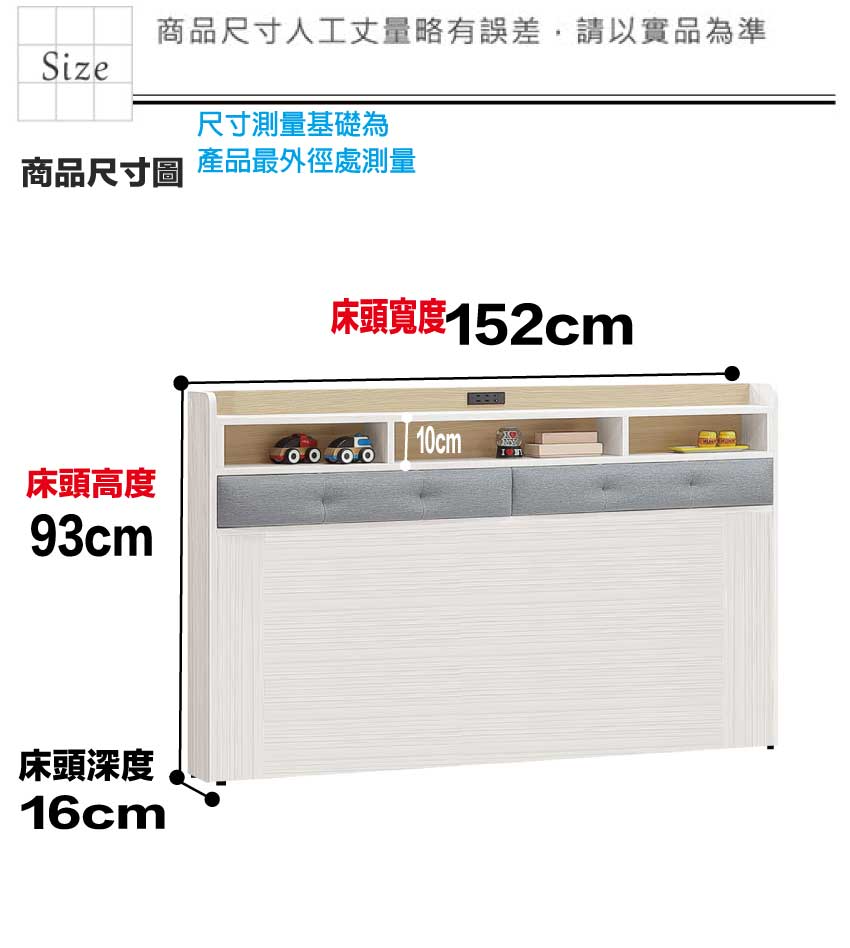 床頭尺寸:(寬)152x(深)16x(高)93/公分